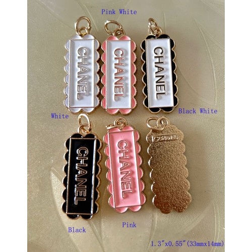 Chanel Charm Pendant Long Buttons CC Ring Gold Edge 1.3"x0.55"(33mmx14mm) cu222